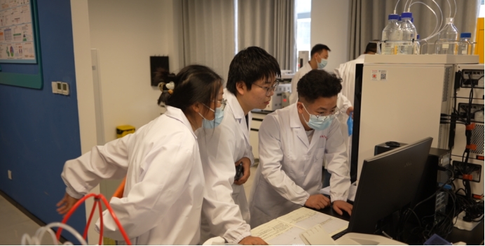 當記者走進寧強高新區綠色食藥產業創新研究院時,陜西師范大學化學化工學院副教授、藥用單分散聚乙二醇研發團隊黃治炎博士正帶著幾名學生在實驗室里忙碌。他們俯身在實驗臺前,專注地進行著實驗操作,記錄著各項數據。實驗室里整齊排列著各種檢測設備,研究人員有條不紊地開展著樣品分析和測試工作。