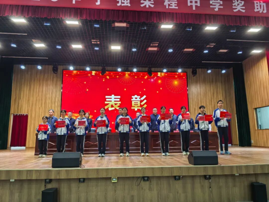隨后,60名家庭經(jīng)濟(jì)困難或品學(xué)兼優(yōu)的學(xué)子分批上臺領(lǐng)取“榮程助學(xué)金”,這份資助為他們的求學(xué)追夢之路保駕護(hù)航;緊接著“榮程園丁獎”頒發(fā),獲獎教師手捧榮譽(yù)證書,滿臉幸福,儀式氛圍被推向高潮。